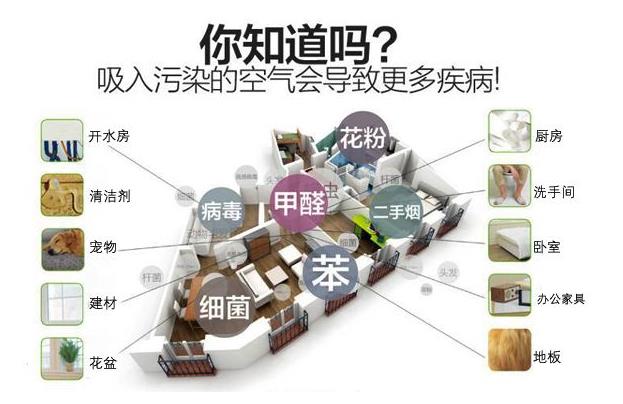 在經濟發達、科學和醫療先進的今天,一些聞所未聞的怪病為何接踵而來?如SARS、禽流感;為何患癌癥、白血病的人越來越多,而且呈低齡化趨勢?這些除了與人們的飲食、生活習慣有關系外,被污染的空氣也是致病的罪魁禍首。 世界衛生組織(WHO)證實,甲醛致癌,誘發兒童白血病。城市兒童白血病患者中,90%的家庭一年內進行過室內裝修! 中國標準化協會調查顯示,68%的疾病是由于室內污染造成!美國專家檢測發現,在室內空氣中存在500多種揮發性有機物,其中致癌物質就有20多種,致病病毒200多種,危害較大的主要有:氡、甲醛、苯、氨以及酯、三氯乙烯等。室內空氣的污染程度要比室外嚴重2-5倍,有時可達到100倍。美國等發達國家已將室內空氣污染歸入危害人類健康的5大環境因素。