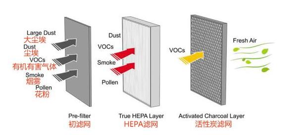 雖然除去甲醛的最好辦法就是通風(fēng),但大家經(jīng)常還能看到空氣凈化器的去甲醛的功能。在被動(dòng)吸附過濾式空氣凈化器中,這個(gè)功能也是通過濾網(wǎng)來實(shí)現(xiàn)的。甲醛本身也是氣體,所以HEPA濾網(wǎng)在這時(shí)無法起效,而是通過再附加一層活性炭濾網(wǎng),通過吸附甲醛的方式來去除甲醛。